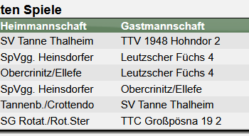 KEM Erzgebirge Erwachsene Aber zuvor stehen am morgigen 3. Oktober noch die Kreiseinzelmeisterschaften der Erwachsenen in Annaberg an. Thalheim wird dabei mit Sarah, David und Thomas alle 3 Konkurrenzen (Damen, Erwachsene A und B) vertreten. Wir wünschen allen drei viel Erfolg. 🏓 KEM Erwachsene Erzgebirge Thalheim 3 – Stollberg 3…