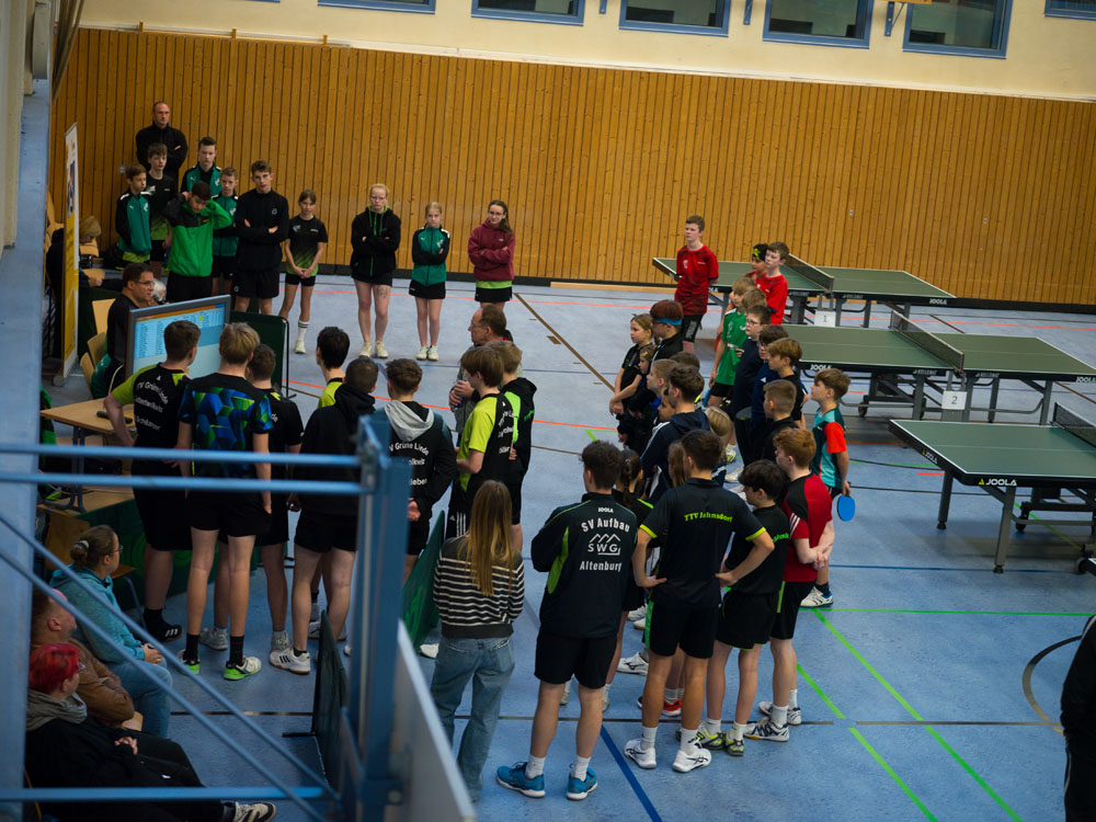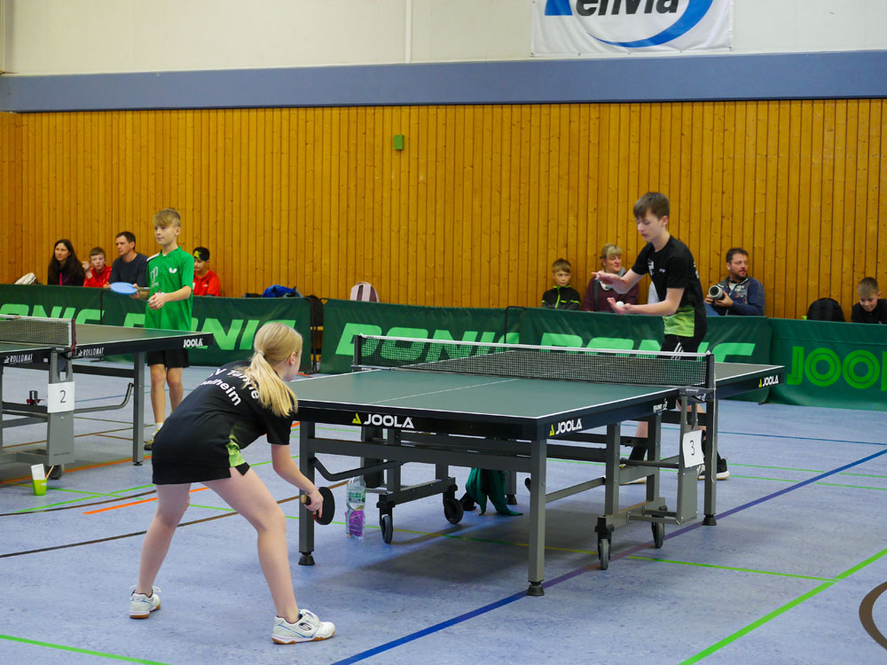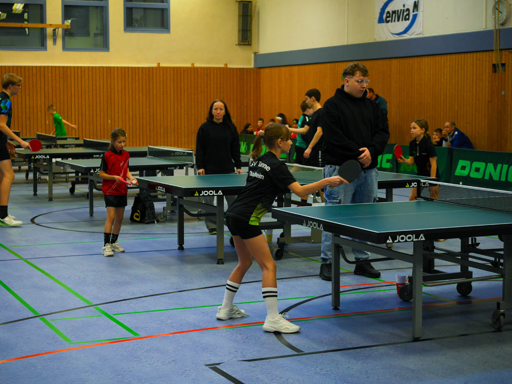 Auch am zweiten Turniertag stand die Stimmung der Nachwuchsspieler der des Vortages in nichts nach. Trotz winterlicher Witterung fanden 45 junge Sportlerinnen und Sportler den Weg in unsere Halle.